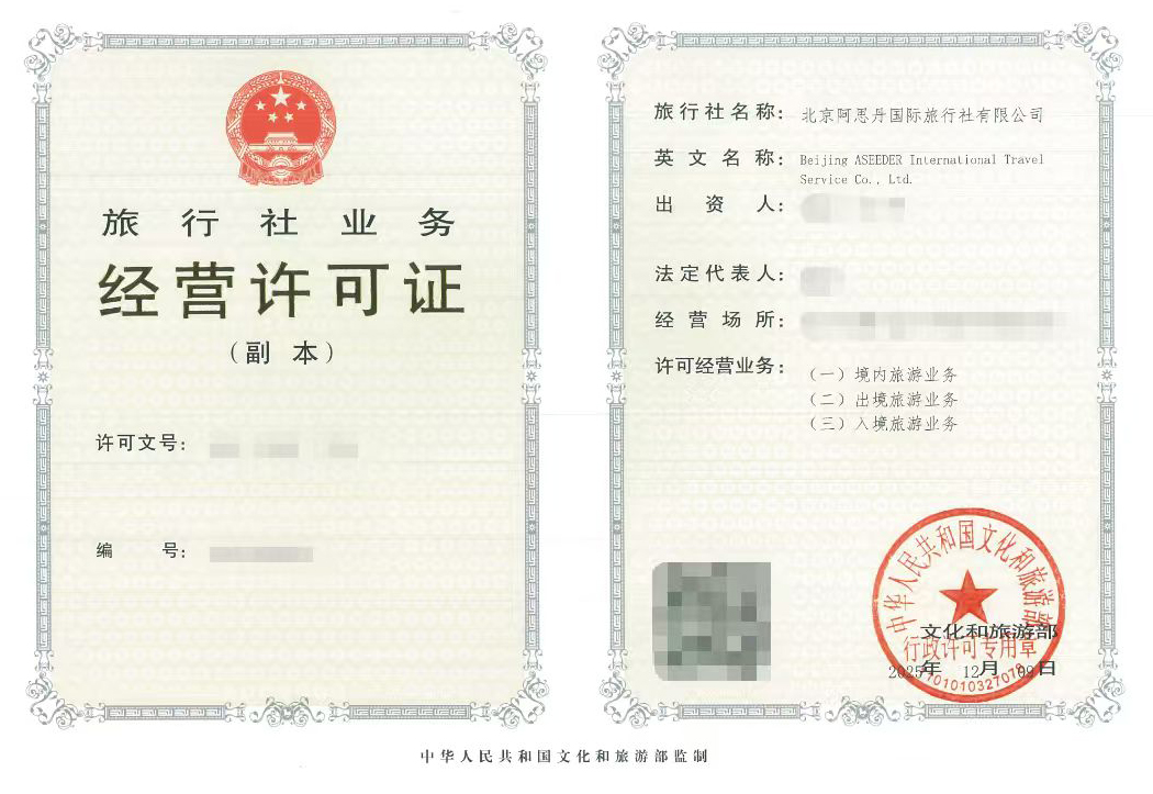 • 荣获国家文化和旅游部颁发《旅行社业务经营许可证》,许可经营境内与出入境旅游业务,是国内素质教育和留学背提行业少有的拥有文旅部“经营出入境旅游”完全资质企业。
