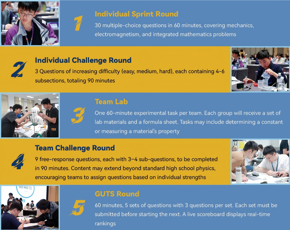 Unlike individual-based tests, BPT includes both individual and team challenges covering theoretical, experimental, and collaborative aspects, fostering participants' passion for sicence.