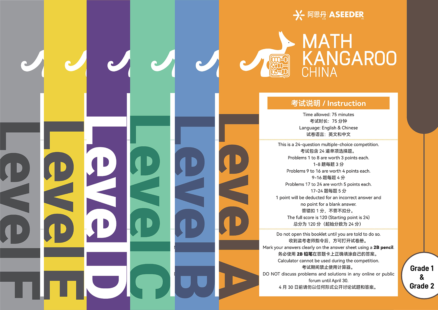 | Level A, B | 45min | Questions 1-20: Multiple-choice (4 points each), Questions 21-24: Fill-in-the-blank (5 points each). Total score: 100 points. No points deducted for incorrect answer. |