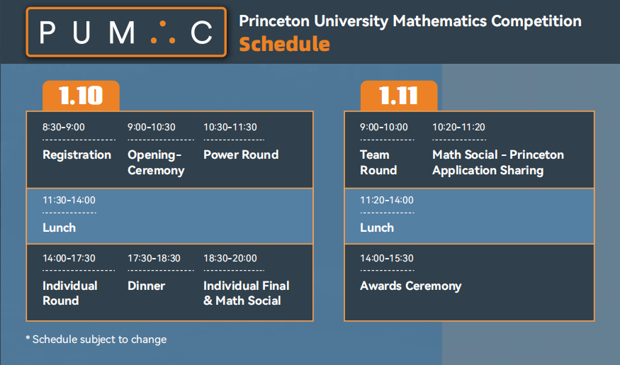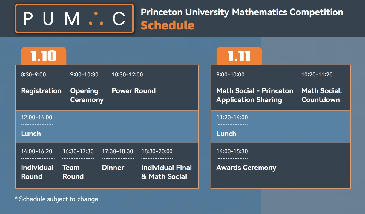Established in 2006 by Princeton University Mathematics Club, PUMaC marks its 20th anniversary in 2025. This prestigious high school competition offers a global platform for showcasing mathematical excellence.Covering diverse mathematical fields, PUMaC emphasizes collaborative problem-solving and logical reasoning. It is widely regarded as a premier mathematics competition where awards represent exceptional achievement. Many participants continue to top universities worldwide, demonstrating PUMaC's role in identifying outstanding talent.