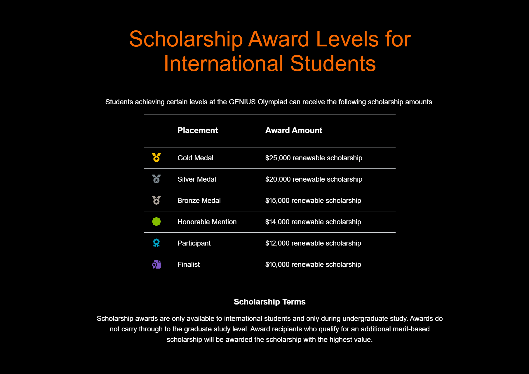 2025年,阿思丹香港(ASEEDER)正式成为Genius Olympiad 中国主办方,将这项全球最具影响力的青少年科创项目引入中国。此次合作将为中国学生提供与全球70多个国家同龄人同台竞技、交流思想的宝贵机会。在挑战中表现优异的同学将有机会受邀前往美国参加全球轮,这不仅能为学术履历增添具有国际认可度的亮点,优秀者更有机会获得主办大学颁发的奖学金,此外,科学类项目的杰出成果还有机会被推荐至 * 《国际高中生研究期刊》(IJHSR)发表,夯实高阶学术背景。