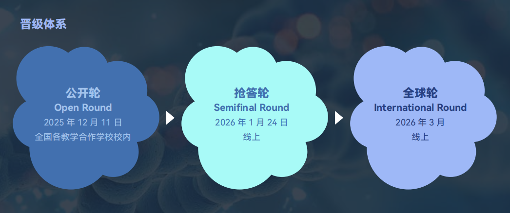 国际生物团体挑战 (IBB) 是一项全球性的生物学挑战,旨在激发高中生对生物科学的兴趣,提升他们的科学素养和团队合作能力。自 2009 年创办以来,已有超过 40 个国家和地区的 7000 多名学生参与。国际生物团体挑战 (IBB) 以团队形式进行,每支队伍最多由 4 名参与者组成。团队需要在规定的时间内回答一系列关于生物学的挑战性问题,锻炼生物知识储备,培养批判性思维与问题解决能力。题目参考 AP 生物课程至美国生物奥林匹克 (USABO) 的考察范围及难度,涵盖分子生物学、生态学、遗传学和生物技术等多个领域。国际生物团体挑战 (IBB) 为中国学生提供展示生物知识的平台,并鼓励生物领域的优秀青年在全球范围内交流合作。在国际生物团体挑战(中国站)抢答轮挑战中获奖的团队可免费晋级全球轮,其中获得最佳优胜奖的前 4 支团队,将直接晋级国际生物团体挑战全球轮预选,与 IBB 美国站、IBB 亚洲站的顶尖团队争夺国际生物团体挑战的全球荣耀。