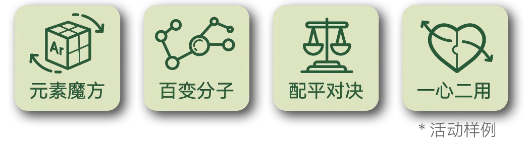 化学嘉年华由多个迷你化学挑战组成,挑战速度,挑战脑力,在玩转化学的同时,结交志同道合的朋友!完成闯关与集章,有机会抽取化学主题奖品。