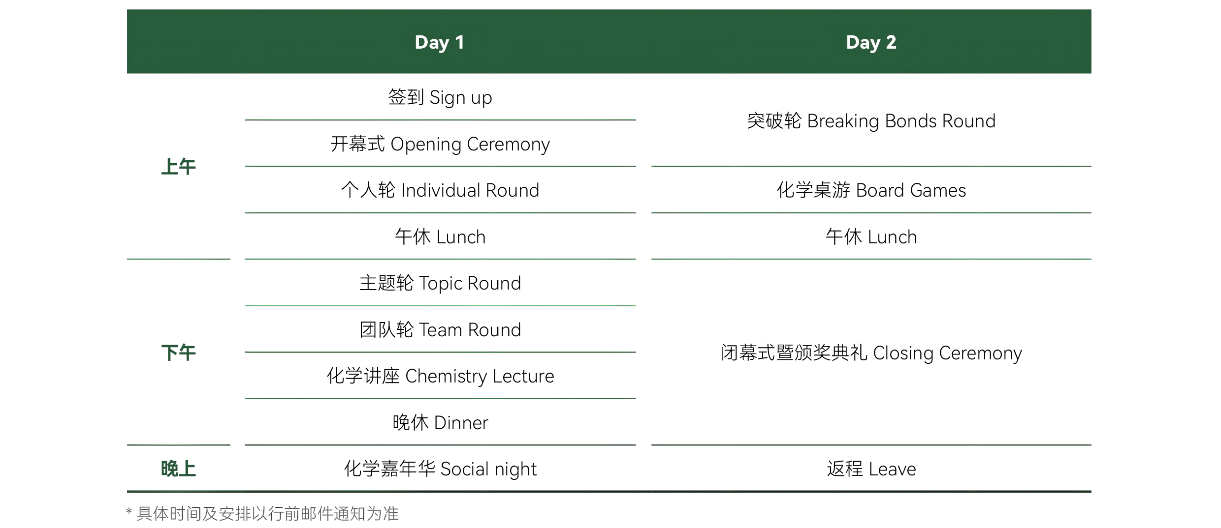 WUCT强调科学的实际应用,鼓励解决问题和团队合作的技能,是难得的化学领域团体活动。挑战共分为4个环节,分别为个人轮、主题轮、团队轮、突破轮。WUCT旨在帮助学生发掘运用化学知识和解决问题的能力,这些问题侧重于现实世界和化学的高级应用。学生将在多元主题、新颖前沿的挑战题目中,增加对化学的理解,锻炼团队合作意识,发掘自己的独特潜力。每年美国化学团体挑战(WUCT)都会宣布当年的主题,并围绕主题设计环节与挑战,使学生在参与挑战活动的同时,接触并进一步探索前沿化学领域。2025年,美国化学团体挑战的主题是科幻化学、发光化学、奇异元素化学,主题轮挑战的相关题目将会围绕这一主题展开。